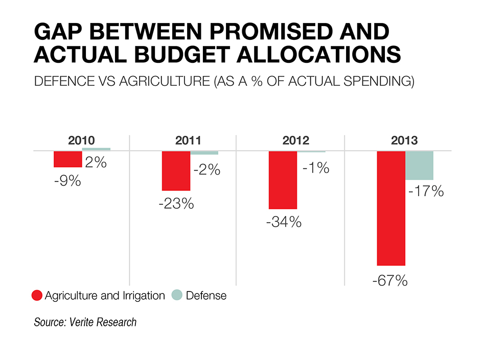 There isn’t much evidence that the expenditure cut has come from a crackdown on waste and corruption. But there is some evidence that it has come at the expense of things that deserved significant government investment and spending. For instance, if you look at what happened with agriculture and irrigation spending in 2010, it got 9% less than the budget allocation, in 2011 it got 23% less, in 2012 it was 34% less than the allocation and in 2013 it received 67% below the allocation. The only sector that held its allocation in the budget was defence. In 2010 it actually got 2% more, 2011 was 2% less, 2012 was 1% less and it was only in 2013 that it recorded a significant cut of 17%.